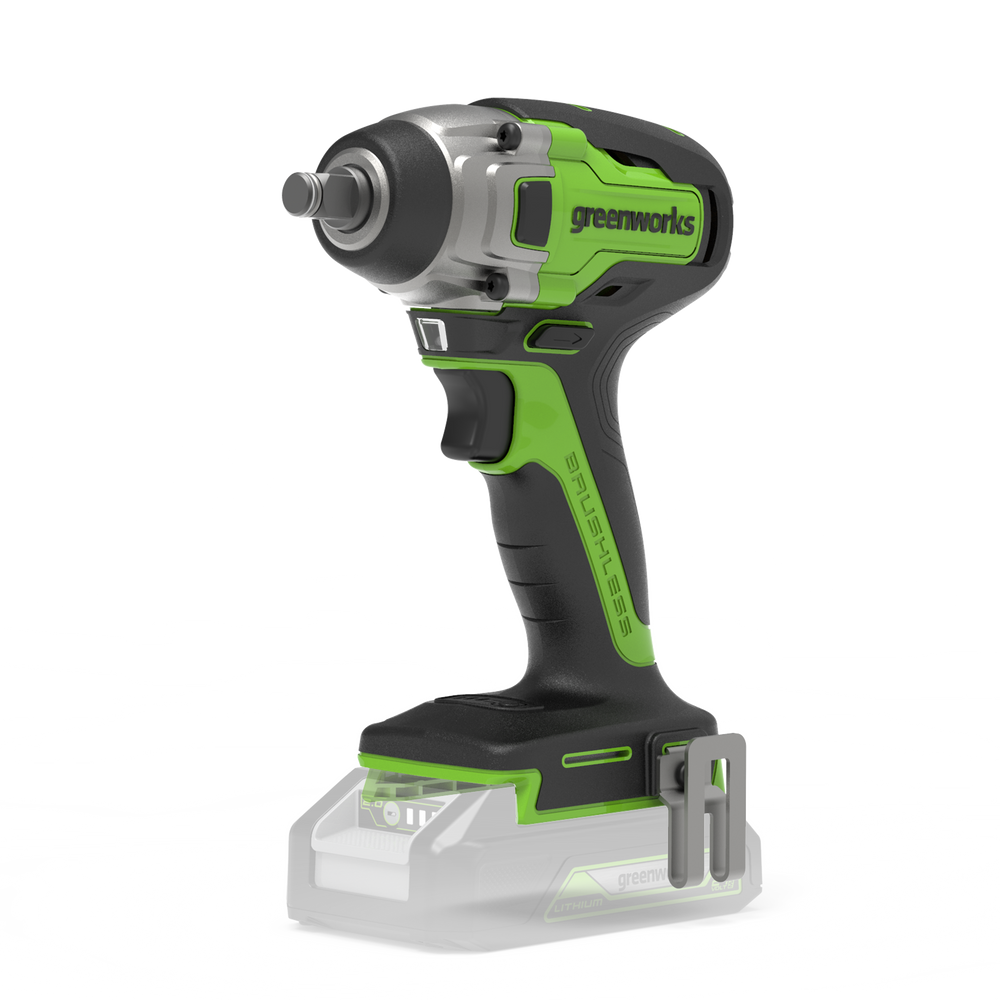 The Greenworks GD24IW400 is a robust, lightweight 24V impact wrench designed for home and DIY tasks. Powered by an advanced 24V lithium-ion battery, the machine offers high performance despite its compact size. Convenience is guaranteed with no electric cables to contend with, simply insert the battery and work.