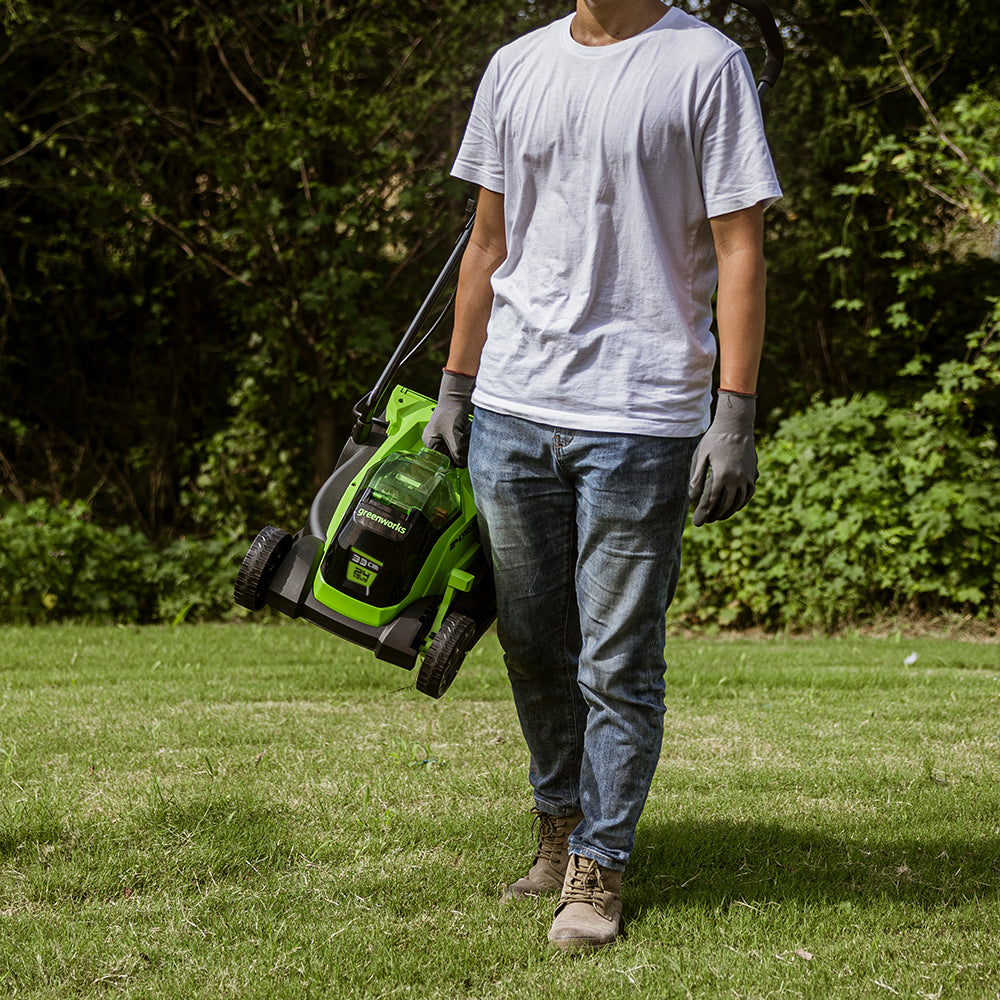 The Greenworks GD24LM33 is a highly versatile push lawnmower designed for smaller lawns. Powered by an advanced 24V battery, as part of the 24V family the battery can be used in any of the other tools available, for total flexibility and convenience.