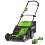 The Greenworks G40LM41 is a highly versatile lawnmower with a 41cm cutting width for small to medium sized lawns. Powered by an advanced 40V lithium-ion battery which combines a compact design with powerful performance, as part of the 40V family the battery can be used in any of the other tools available, offering total flexibility and convenience.